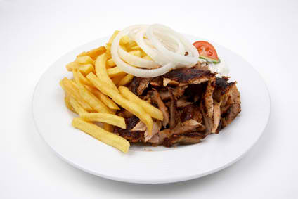Gyros kann in vielen griechischen Tavernen als Portion für etwa 5,50 - 8,50 Euro (Stand 2011) bestellt werden. Die Hauptspeise besteht dann aus Fleisch und Beilagen. Es gibt zum Gyros meist Pommes oder Reis sowie Salat (Tomaten, Gurken oder Kraut). Meist ist auch etwas Tsatsiki auf dem Teller. Noch verbreiteter ist Gyros als Zwischenmahlzeit oder Fast Food in Form der Gyros-Pita.
