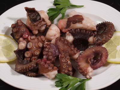 Einen frischen Oktopus zuzubereiten ist nicht ganz einfach. Die tote Krake muss sauber gereinigt werden. Die Haut muss abgezogen werden. Innereien, Saugnäpfe und anderes müssen professionell entfernt werden. Das tote Tier sollte an einem Stein weichgeklopft werden. So etwas kann man nur lernen, wenn man es sich von einem guten griechischen Koch zeigen lässt. Der Oktopus wird darauf in große Stücke geschnitten (oft werden die acht Arme in je einem Stück gelassen).